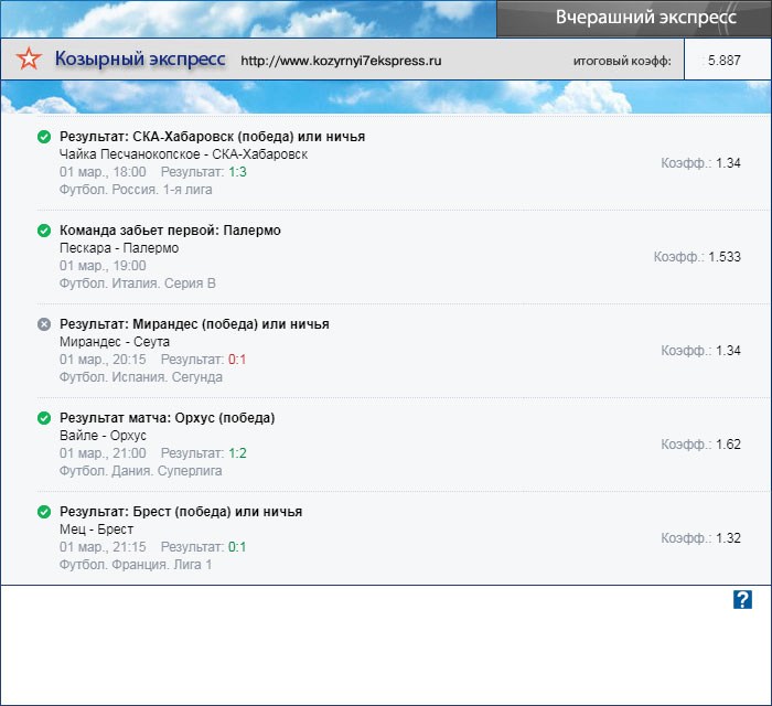 Кнопка перехода на сегодняшний экспресс находится под этим текстом.